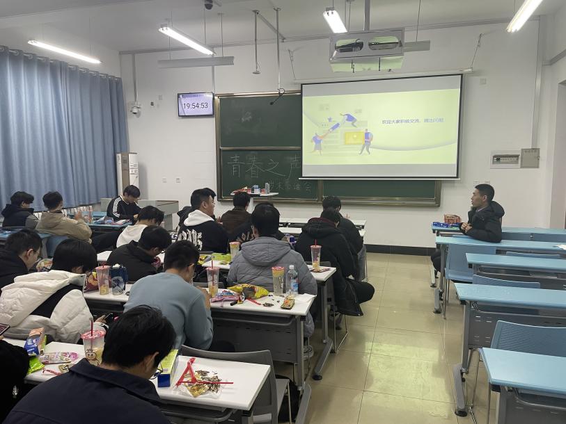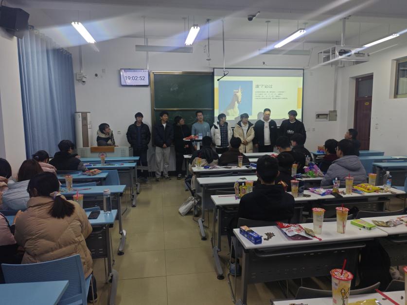 随后,班会进入学业与班级建设交流环节。班长段正昆提醒同学们重视专业学习、积极参与校园活动,鼓励同学们在追求个人成长的同时,也为班级争光添彩,共同营造积极向上的班风班貌。