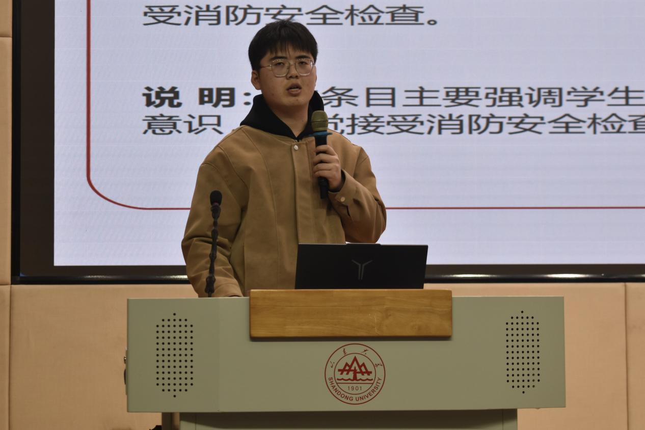 宿舍管理中心张晓健系统细致地解读了学校的住宿管理规定,并结合相关案例着重强调了各项安全准则,号召同学们相互提醒监督,保障宿舍安全。