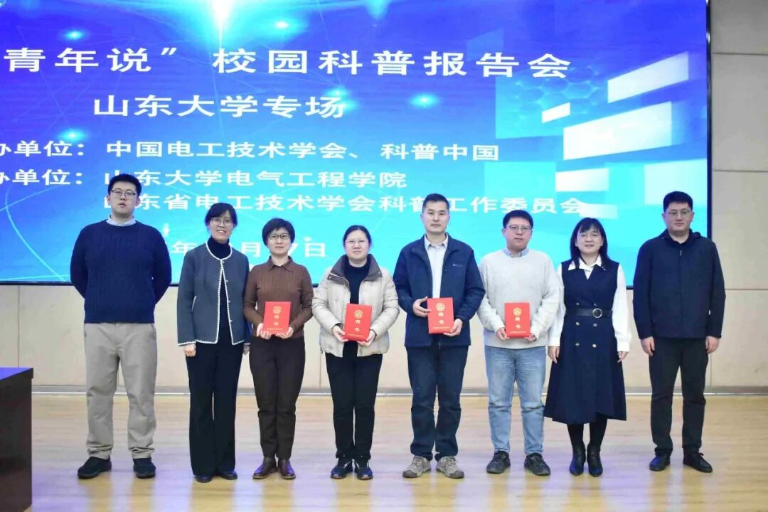 2025年12月17日,由中国电工技术学会与科普中国主办,山东大学电气工程学院和山东省电工技术学会科普工作委员会承办的“电气青年说”校园科普报告会,在山东大学兴隆山校区讲学堂顺利举行。本次活动由山东大学电气学院副院长孙媛媛教授担任召集人,邀请了浙江大学电气学院副院长黄莹教授、中国电力科学研究院王同勋教高和王姗姗正高、青岛科技大学李国倡教授、山东大学李亚辉助理研究员进行专题分享与交流。