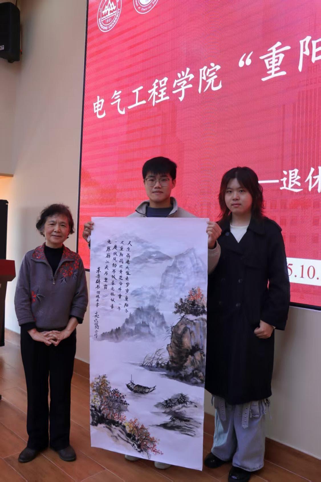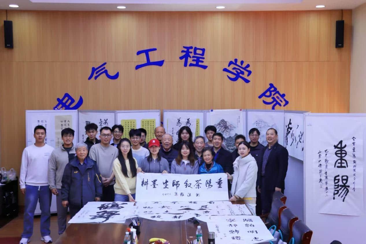 本次活动的所有书画作品后续将在电力楼一楼大厅集中展出,让更多师生感受重阳文化的魅力与师生情谊的温暖。此次联谊活动不仅为退休教师送去了节日的关怀,更让在校研究生在传统文化的浸润中传承了前辈的精神力量,进一步营造了学院尊师重道、薪火相传的良好氛围。