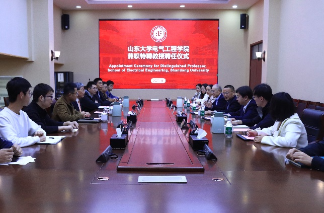 11月5日下午,山东大学电气工程学院举办金喆焕兼职特聘教授聘任仪式。学院党委书记殷录民、院长丁磊参加仪式,并围绕学术研究深化、国际交流拓展等议题展开深度交流探讨。