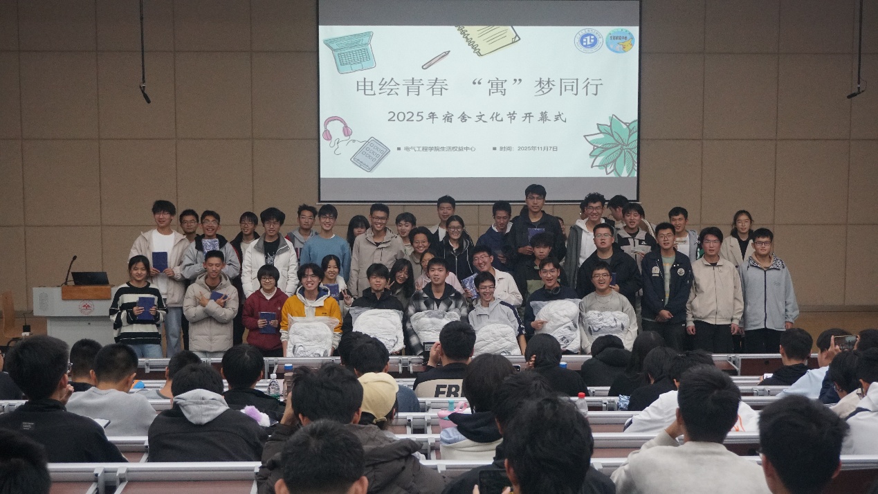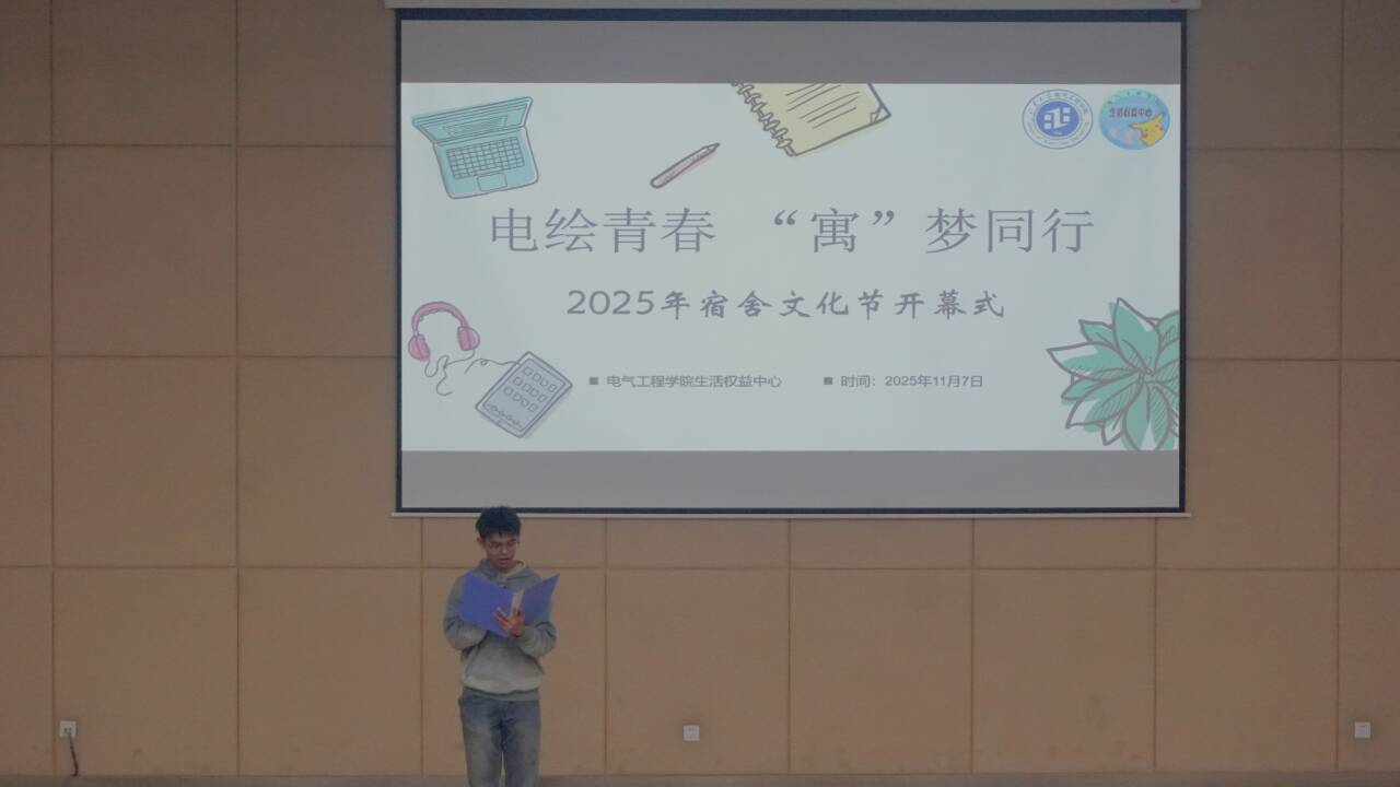 为营造积极向上的宿舍文化氛围,搭建学生展示自我风采的平台,11月7日,电气工程学院举办2025年“电绘青春,‘寓’梦同行”宿舍文化节开幕式。本次活动由杨昊澎主持,2025级本科生辅导员杨东华、刘璇、李善勇和宿舍代表们悉数参会。
