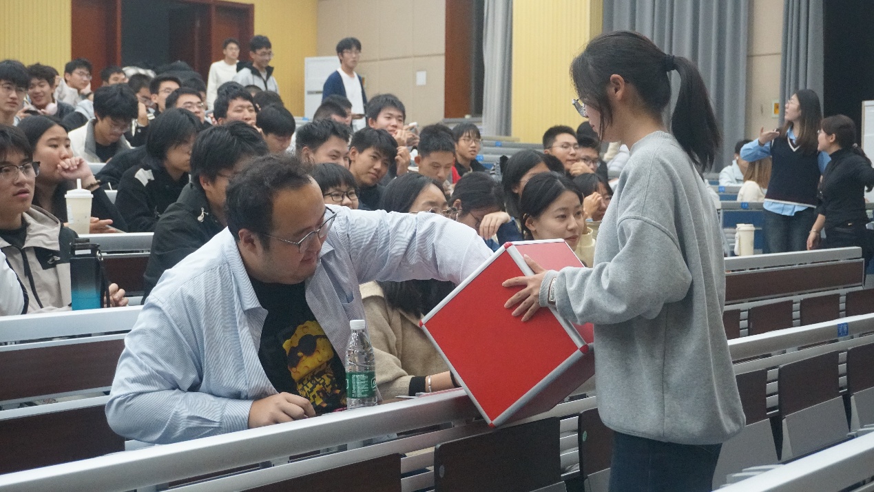 活动穿插两轮幸运抽奖环节,杨东华、刘璇、李善勇等老师参与抽奖,送出多种创意奖品。现场氛围热烈,同学们积极投入各项互动。