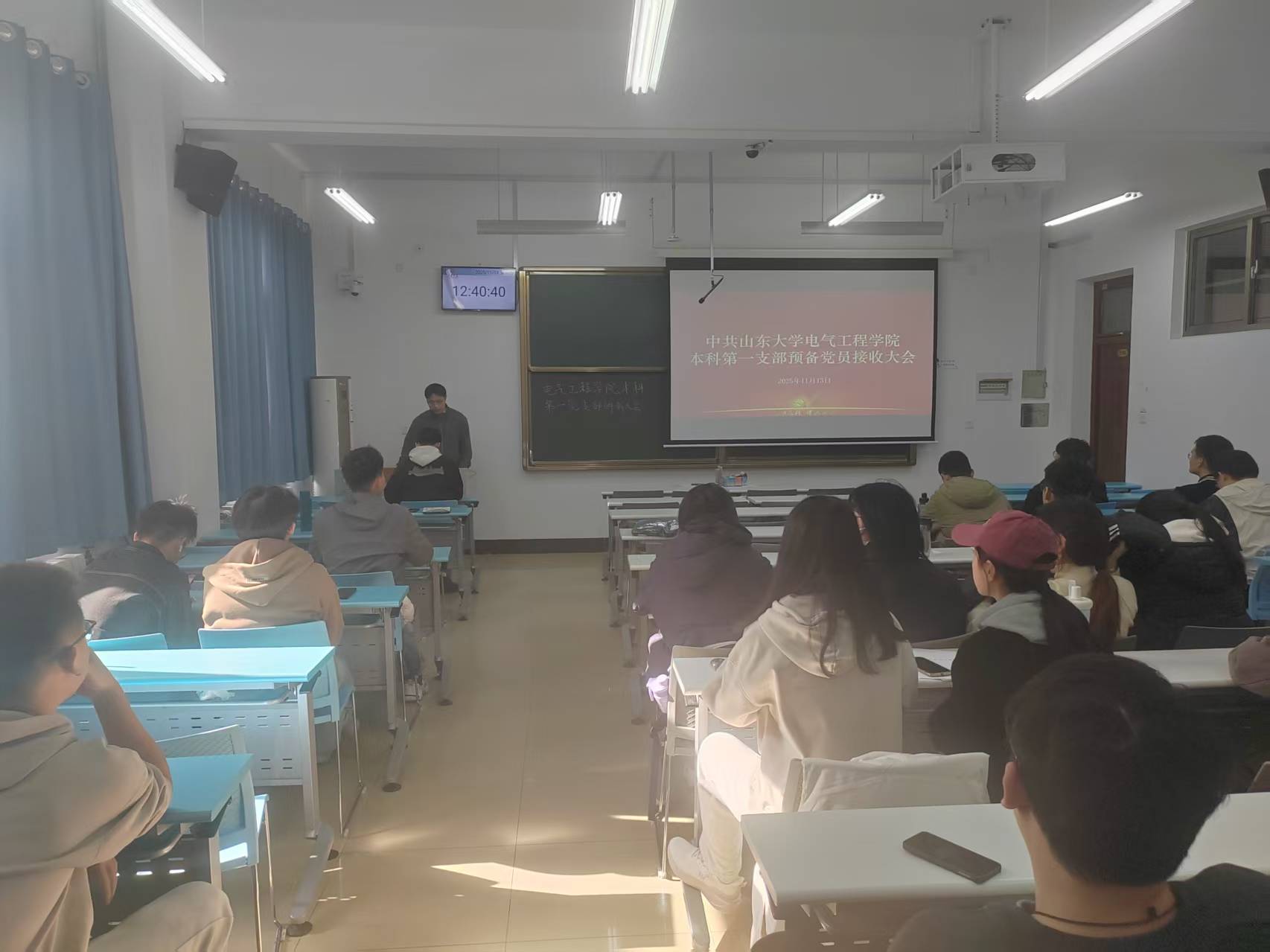 为加强基层党组织建设、壮大青年党员队伍、强化理想信念教育,经学院党委预审批准,电气工程学院本科第一党支部于11月13日召开预备党员接收大会,针对发展对象的入党情况进行逐个讨论和表决,支部全体党员参会。