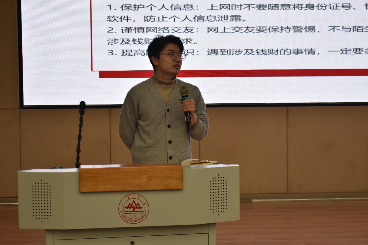 随后,谷宜恒针对即将到来的寒假进行了假期安全教育。他提醒全体同学,注意交通安全,选择正规车辆,避免危险发生;留心防范诈骗,保护个人信息,切勿轻信盲从;关注消防安全、饮食安全、网络安全、人身安全,牢记人走断电,养成良好习惯,坚持健康上网,学会及时求助,保障假期安全。对于假期社会实践,谷宜恒强调,社会实践地点多样,情况多变,要提高整体安全意识,防范各类风险。