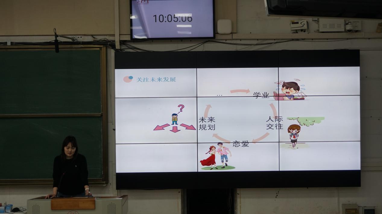 在未来发展方面,滕丹围绕“未来规划”“学业”等关键词与同学们展开深入交流,鼓励同学们结合自身特点明确毕业去向。她通过展示历年数据,为同学们提供了切实可行的学业规划建议。无论是选择读研深造还是求职就业,滕丹都提醒同学们要提前做好充分准备,把握关键时间节点。同时,她希望大家珍惜大学时光,在专注学业之余,积极建立健康向上的人际关系网络。滕丹表示,大学是人生的重要阶段,希望同学们在关注学业和未来的同时,注重心理健康与自我调适,以积极乐观的心态面对今后的校园生活。