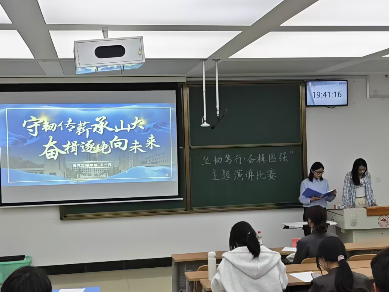 青春之声讲述电气风采,坚韧品格助力图强发展。4月23日,电气工程学院于兴隆山群楼举办“坚韧笃行・奋楫图强”主题演讲比赛院级决赛,2025级本科生辅导员刘璇老师及各班学生代表担任评委,共计十八支队伍参赛。