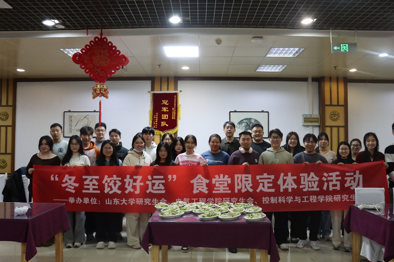 冬至将至,情暖校园。12月14日下午3时,电气工程学院研究生会携手山东大学研究生会、控制科学与工程学院研究生会及千佛山校区餐饮管理部共同举办的“冬至饺好运”食堂限定体验活动,在千佛山校区舜园餐厅二楼顺利举行。来自中心、趵突泉、千佛山三个校区,涵盖八个学院的30余名同学踊跃参与,在欢笑与协作中迎接传统节气的到来。