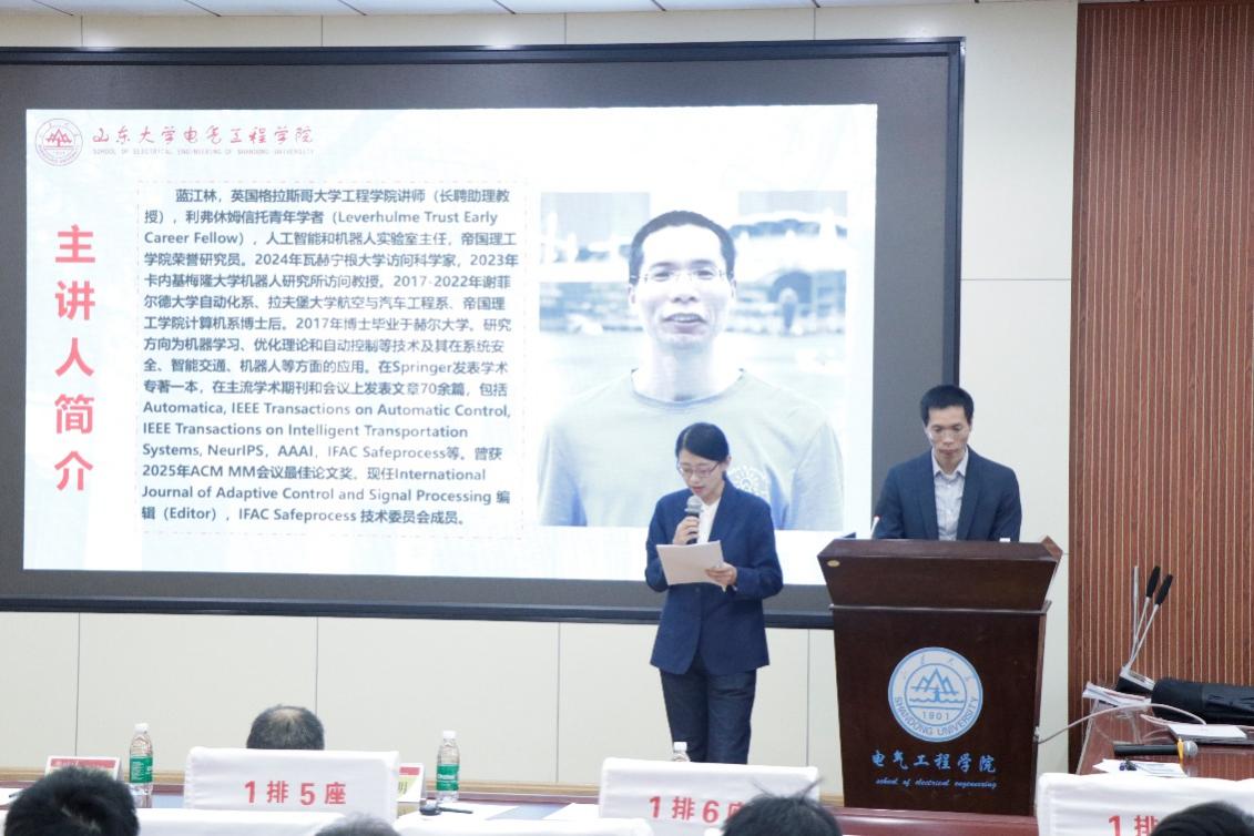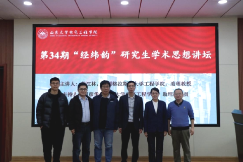 1月6日,电气工程学院第34期“经纬韵”研究生学术思想讲坛在千佛山校区电力楼四楼报告厅成功举办。讲坛邀请到英国格拉斯哥大学工程学院助理教授蓝江林以“学习赋能的自主系统:控制、验证、监控和交互”为题开展分享。讲坛由电气工程学院刘彦华助理研究员主持。